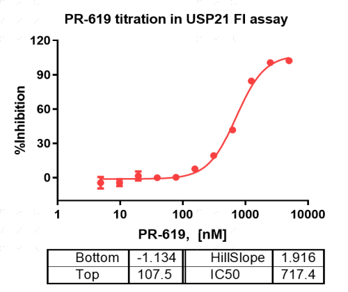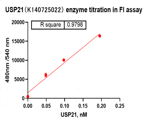 活性验证:FI法检测USP21蛋白的活性:将USP21蛋白和底物在25℃下孵育60分钟,最后在BMG上读取FI信号值。