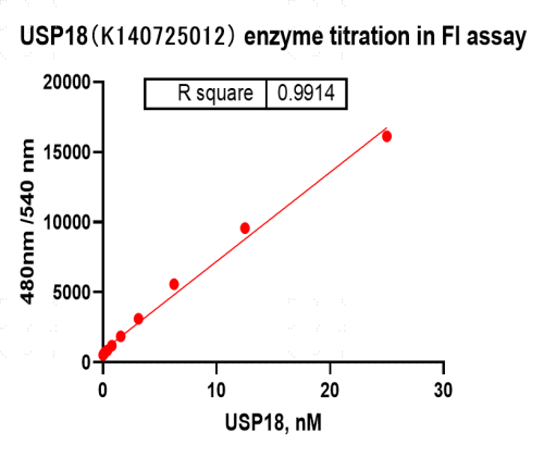 活性验证:FI法检测USP18蛋白的活性:将USP18蛋白和底物在25℃下孵育60分钟,最后在BMG上读取FI信号值。