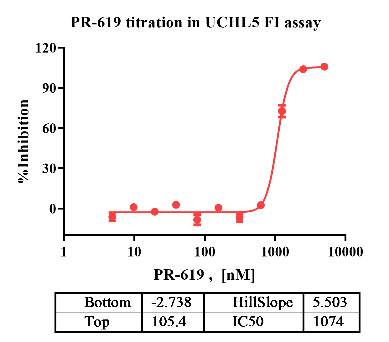 活性验证:FI法检测UCHL5蛋白的活性:将UCHL5蛋白和底物在25℃下孵育60分钟,在BMG上读取FI信号。