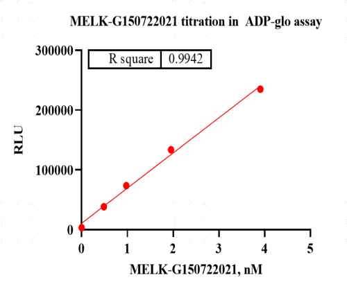 活性验证:ADP-Glo法检测MELK蛋白的活性:将MELK蛋白、ATP和底物在25℃下孵育60分钟,加入ADP-Glo试剂,最后在BMG上读取RLU信号。