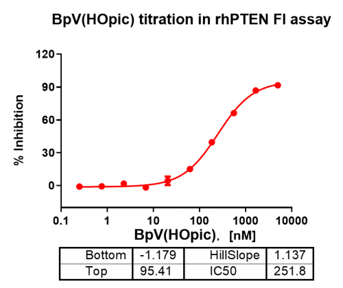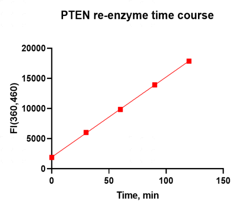 活性验证:一种基于FI的检测法量化测定PTEN蛋白的活性:将PTNE蛋白和底物在25℃下孵育30分钟,最后在BMG上读取FI信号值。。