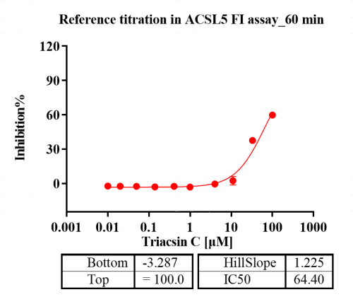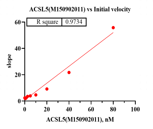 活性验证:FI法检测ACSL5蛋白的活性:将ACSL5蛋白和底物在25℃下孵育60分钟,最后在BMG上读取FI信号值。