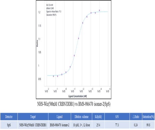 活性验证:Special shift-based法检测Biotin-Wiz蛋白的活性:将用染料标记的Biotin-Wiz蛋白和化合物在25℃下孵育15分钟,最后在Dianthus上读取670/650nm处荧光信号比值。