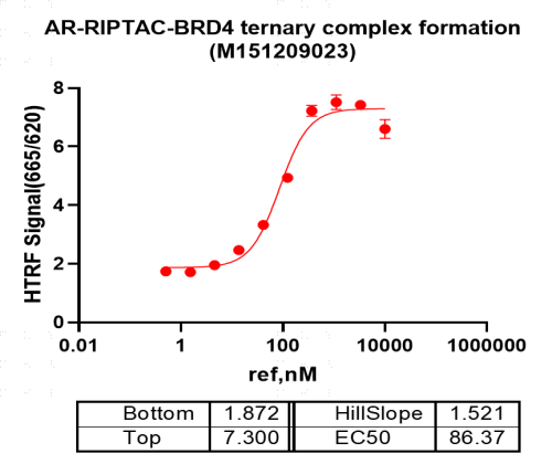 活性验证:HTRF法检测Biotin-ANDR(LBD)蛋白的活性:将Biotin-ANDR(LBD)蛋白、底物、对应的供体和受体在25℃下孵育60分钟,最后在BMG上读取665nm/620nm荧光信号的比值。