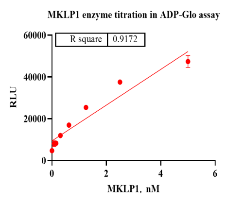 活性验证:ADP-Glo法检测MKLP1的活性:将MKLP1蛋白、ATP和底物在25℃下孵育120分钟,加入ADP-Glo试剂,最后在BMG上读取RLU信号。