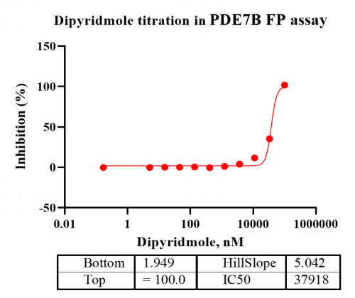 活性验证:FP法检测PDE7B蛋白的活性:将PDE7B蛋白和底物在25℃下孵育60分钟,加入检测试剂,在25℃下孵育60分钟,最后在BMG上读取FP信号。