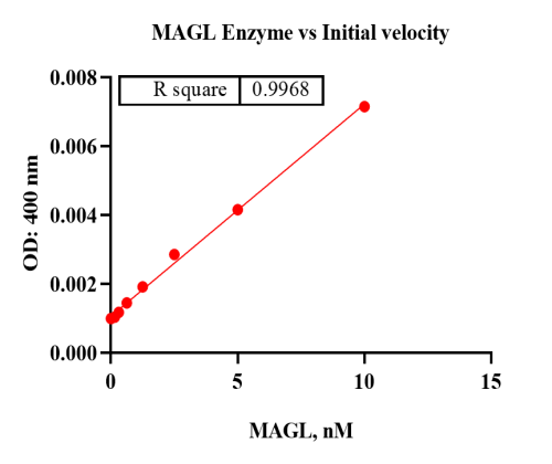 活性验证:Absorbance法检测MAGL蛋白的活性:将MAGL蛋白与底物在25℃下孵育60 min,最后在BMG上读取吸光度值。