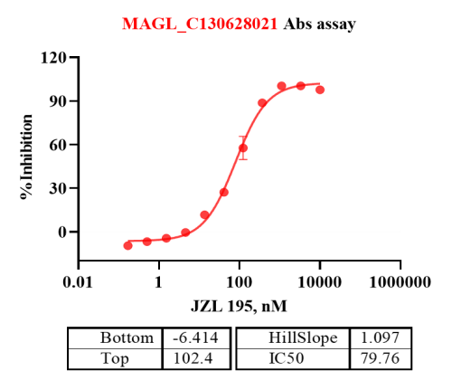 描述:带有N端His标签的重组人MAGL蛋白通过Ni亲和和SEC进行纯化。MAGL蛋白在Absorbance检测中显示出高活性。