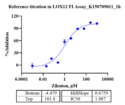 活性验证:FI法检测Biotin-LOX12蛋白的活性:将Biotin-LOX12蛋白和底物在25℃下孵育60分钟,最后在BMG上读取FI信号值。