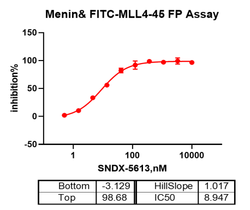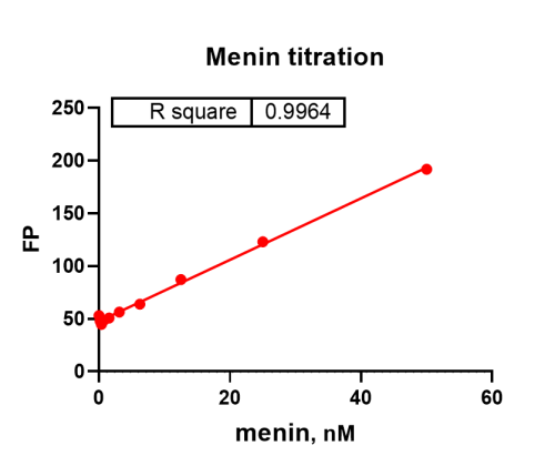 活性验证:FP法检测Biotin-Menin蛋白的活性:将Biotin-Menin蛋白和FITC-MLL4-45在25℃下孵育60分钟,最后在BMG上读取FP信号。