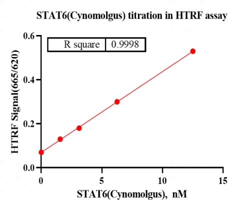 描述:带有N端Avi-3C-His标签的重组猴STAT6蛋白通过Ni亲和层析纯化,在体外生物素化后并进行SEC纯化,最后通过3C酶去除生物素标签。STAT6蛋白在HTRF检测中显示出高活性。