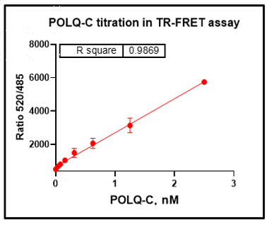 活性验证:TR-FRET法检测POLQ-C蛋白的活性:将POLQ-C蛋白、dNTP、dsDNA以及对应的供体和受体在25℃下孵育120分钟,最后在BMG上读取520/485比值。